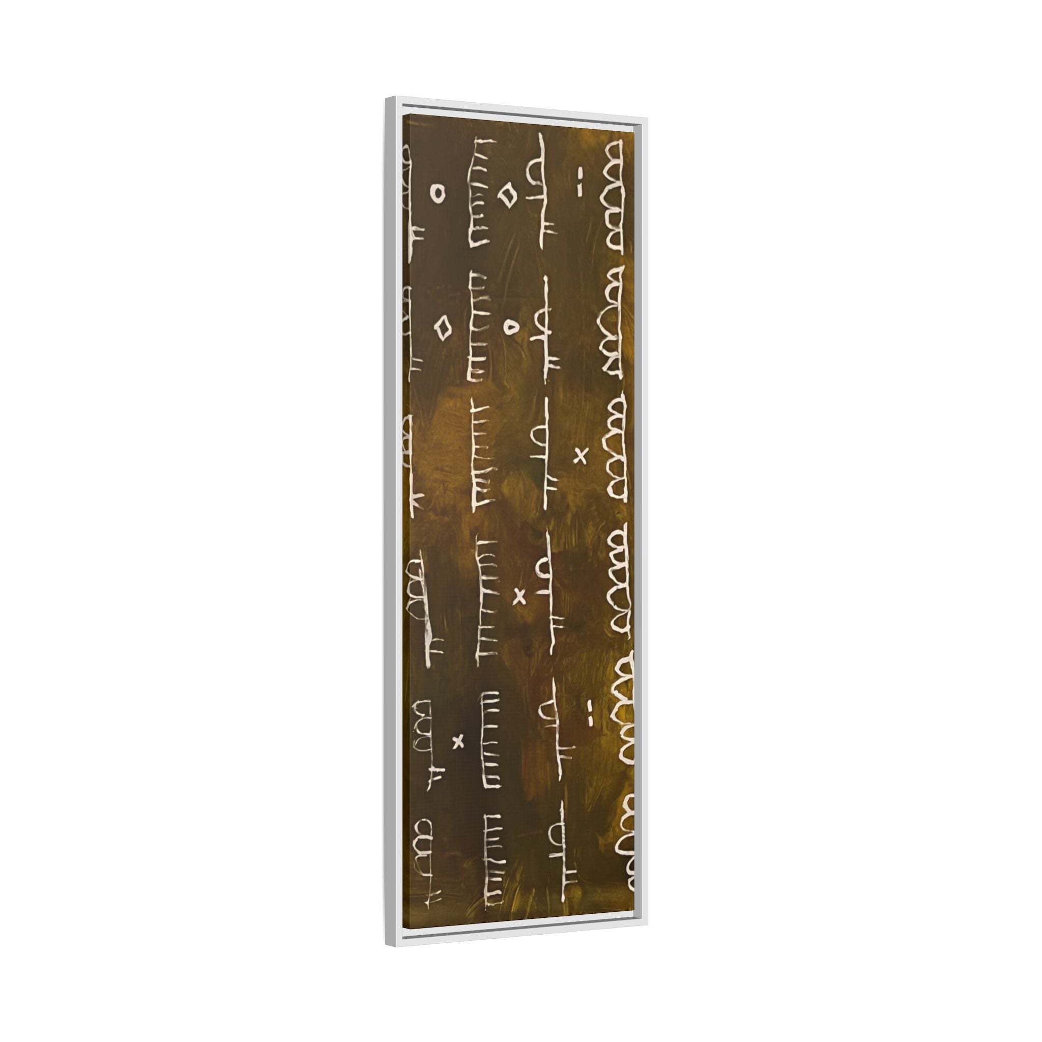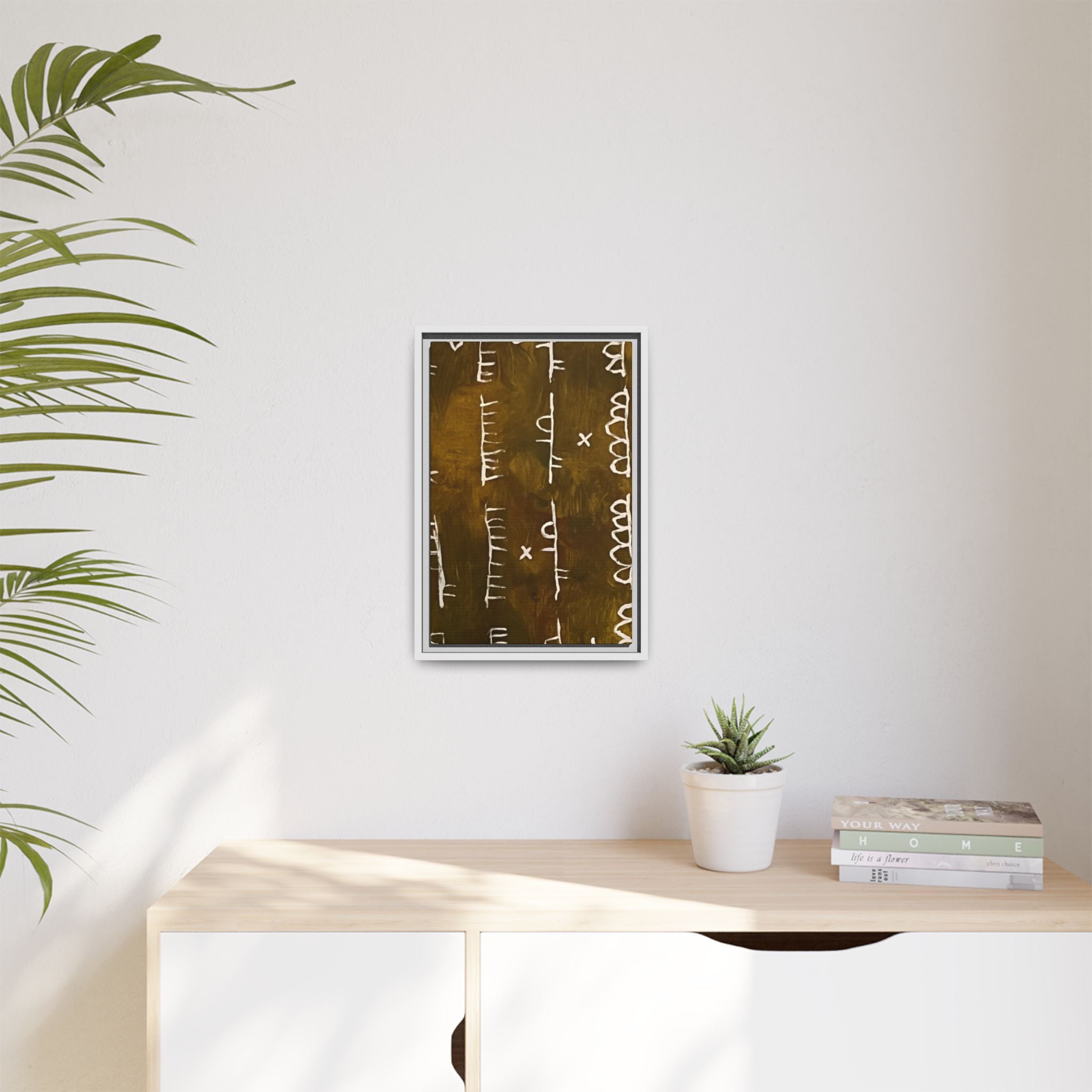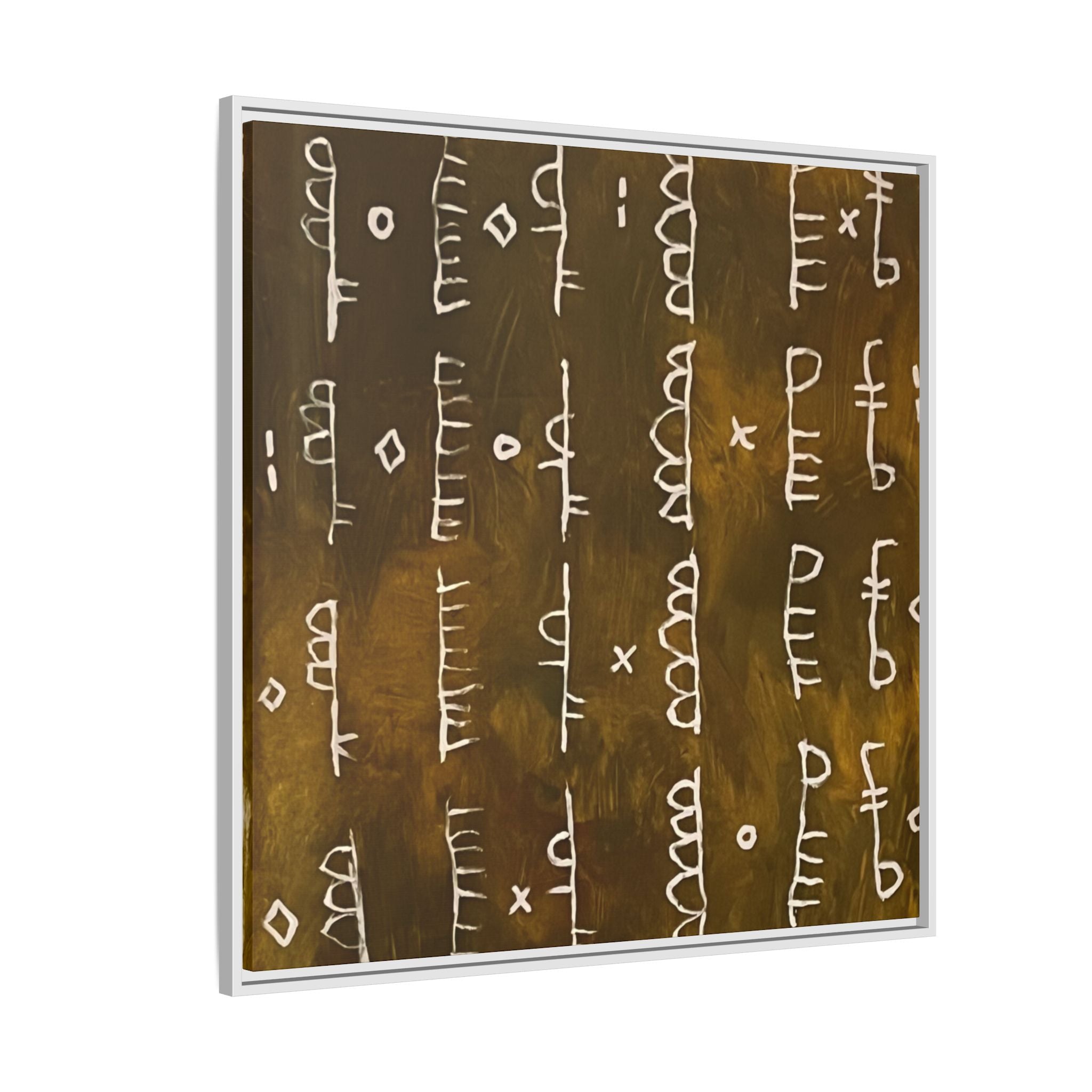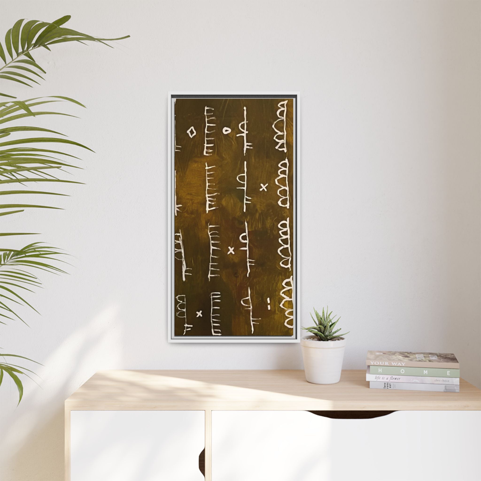 ARCHIVE is a visual language of memory—an abstract script carved in time. With its deep, textured tones and mark-like symbols, this piece echoes ancient records, quiet rituals, and forgotten alphabets. Minimal yet mysterious, it draws the viewer in to interpret, to feel, to remember.