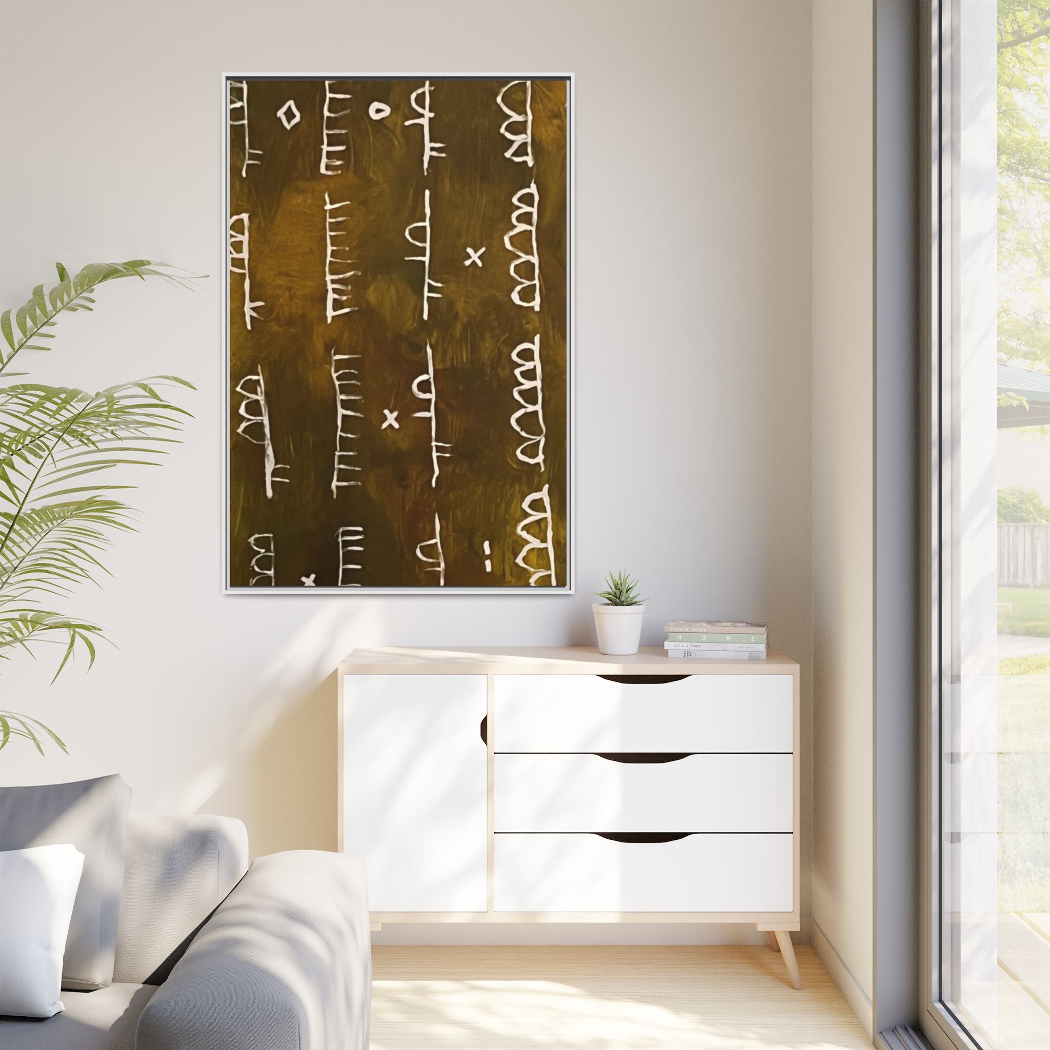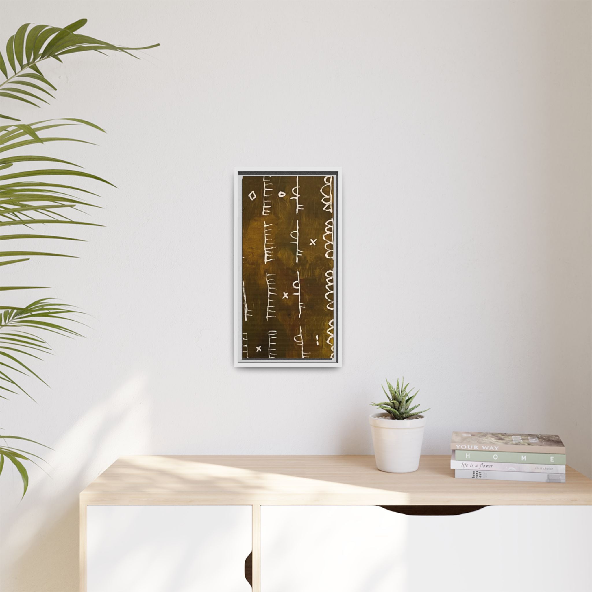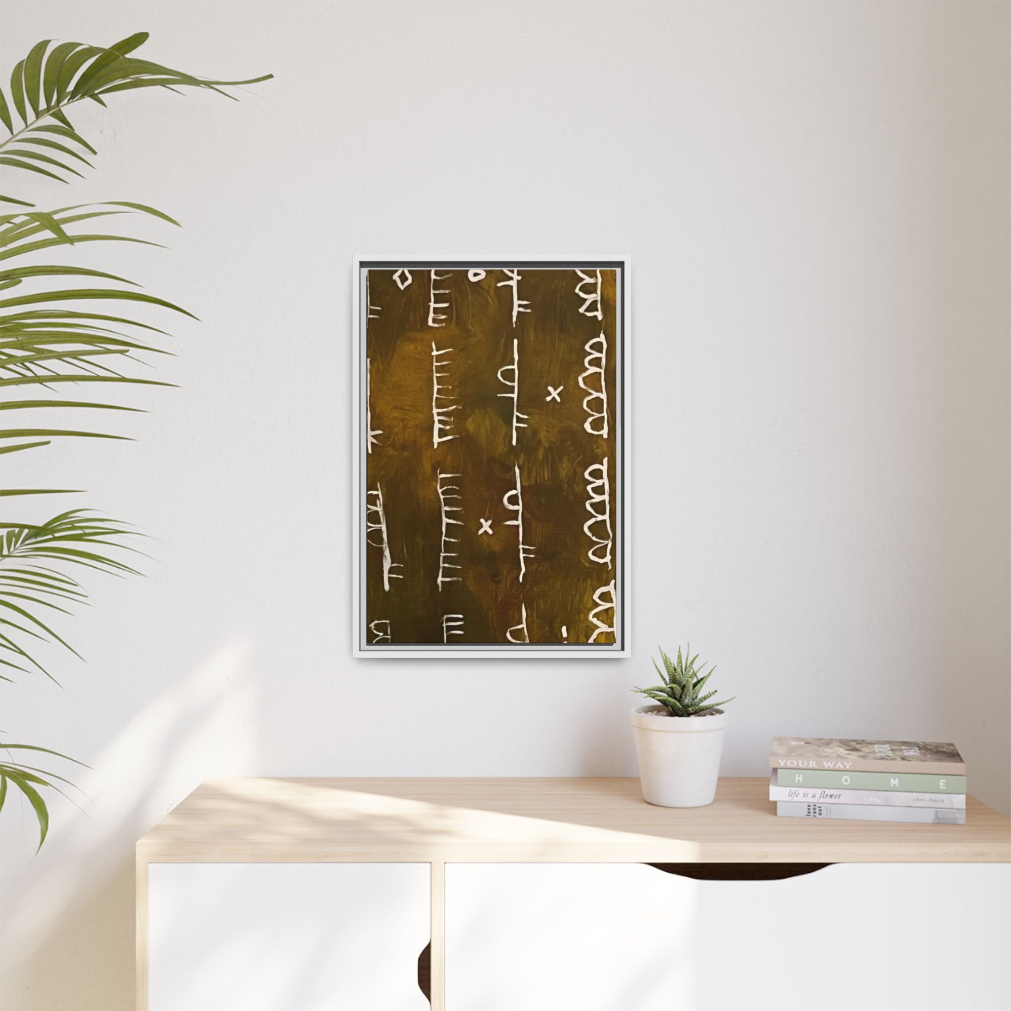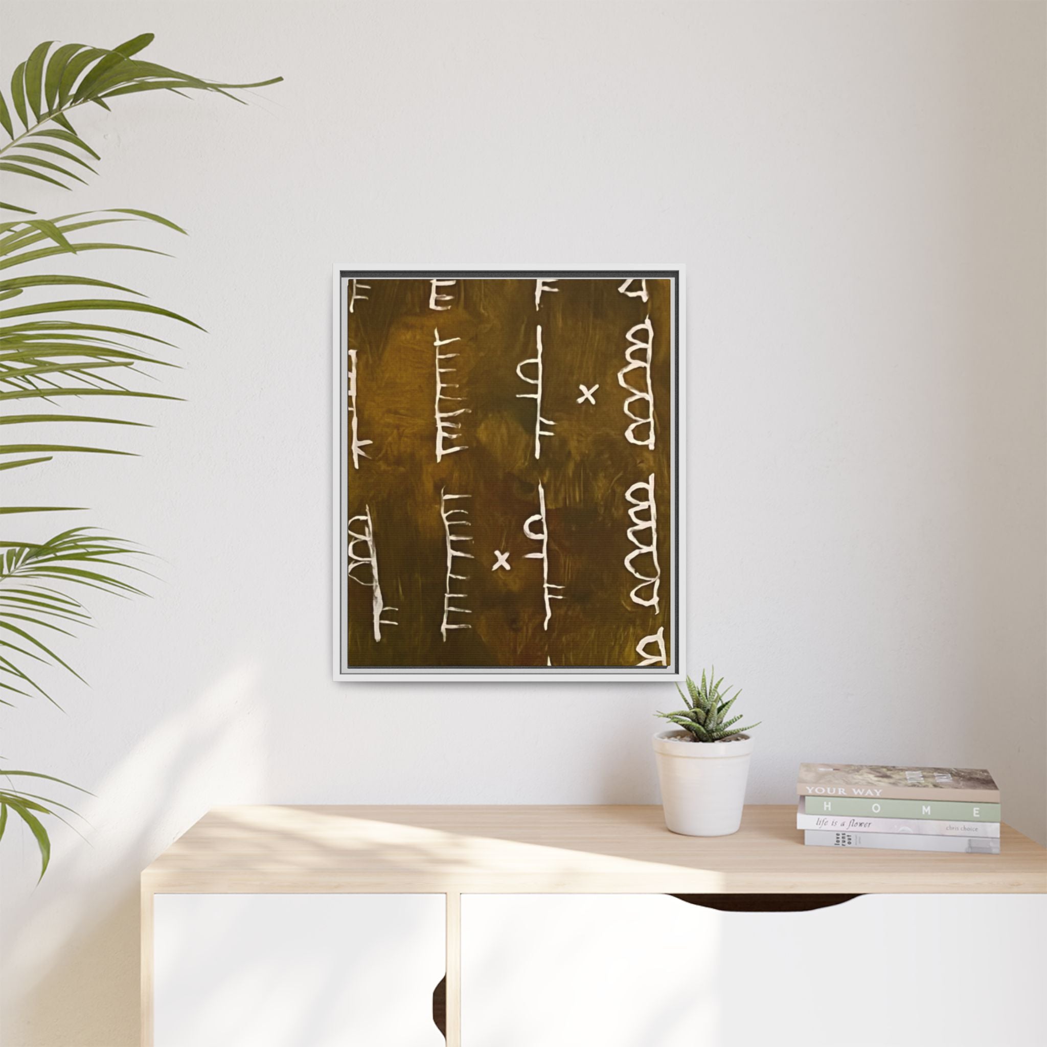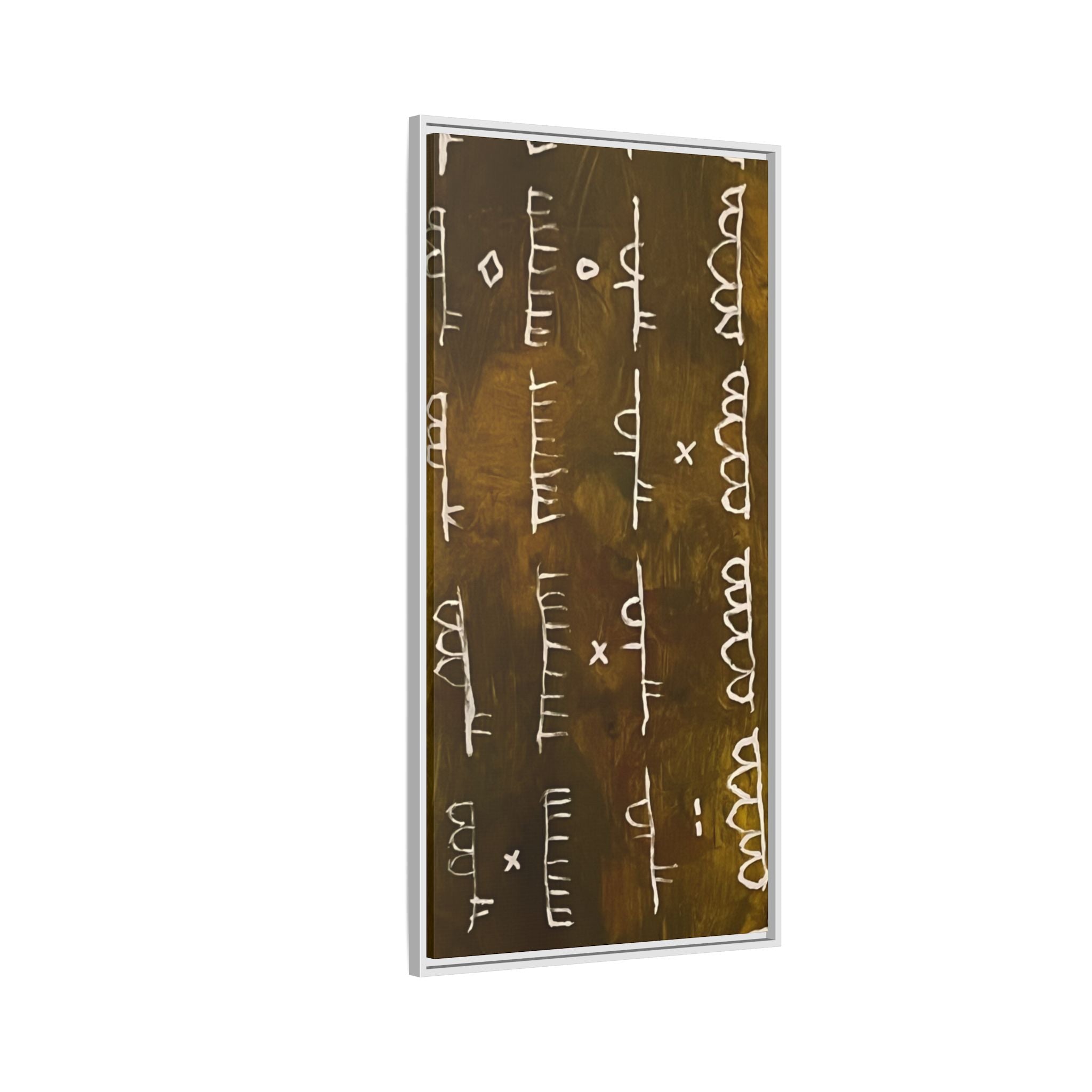 ARCHIVE is a visual language of memory—an abstract script carved in time. With its deep, textured tones and mark-like symbols, this piece echoes ancient records, quiet rituals, and forgotten alphabets. Minimal yet mysterious, it draws the viewer in to interpret, to feel, to remember.