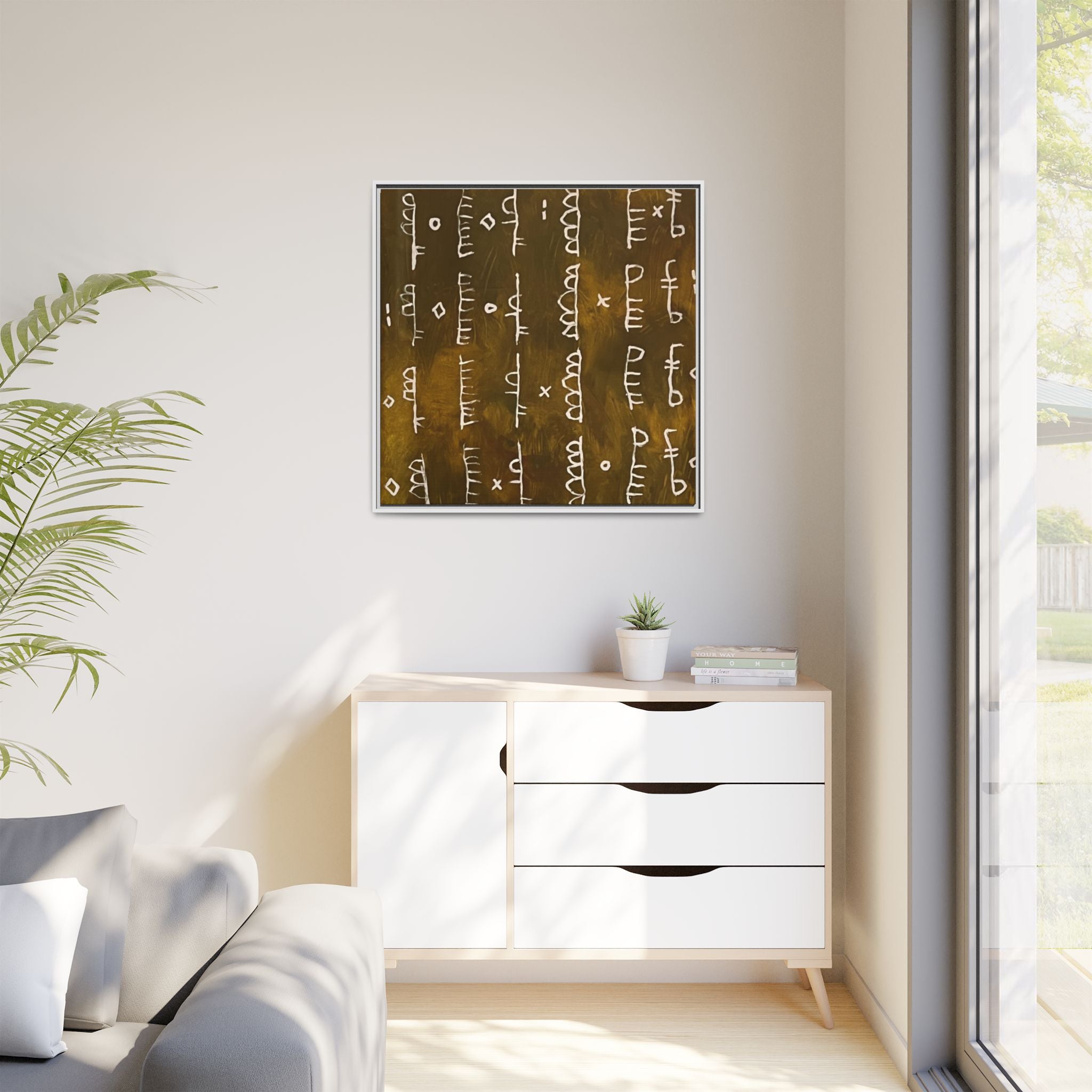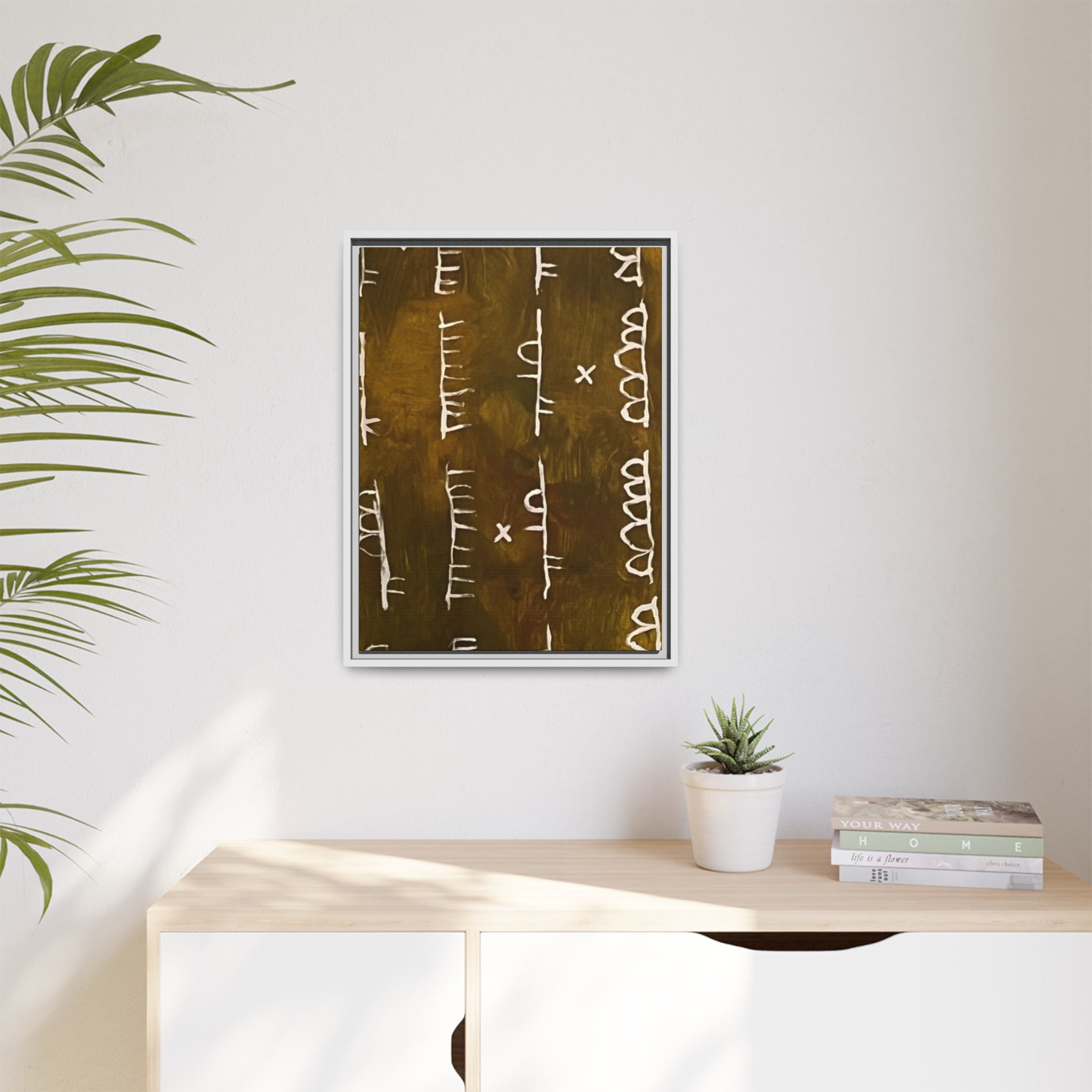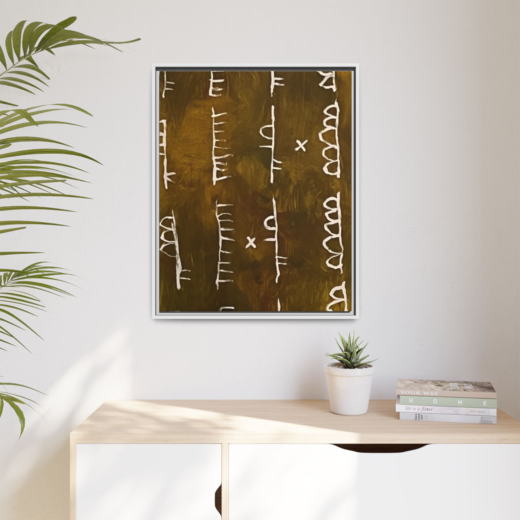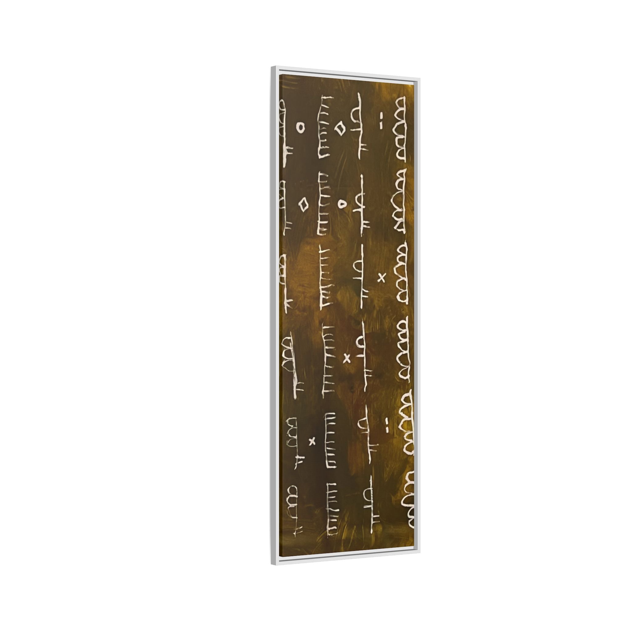 ARCHIVE is a visual language of memory—an abstract script carved in time. With its deep, textured tones and mark-like symbols, this piece echoes ancient records, quiet rituals, and forgotten alphabets. Minimal yet mysterious, it draws the viewer in to interpret, to feel, to remember.