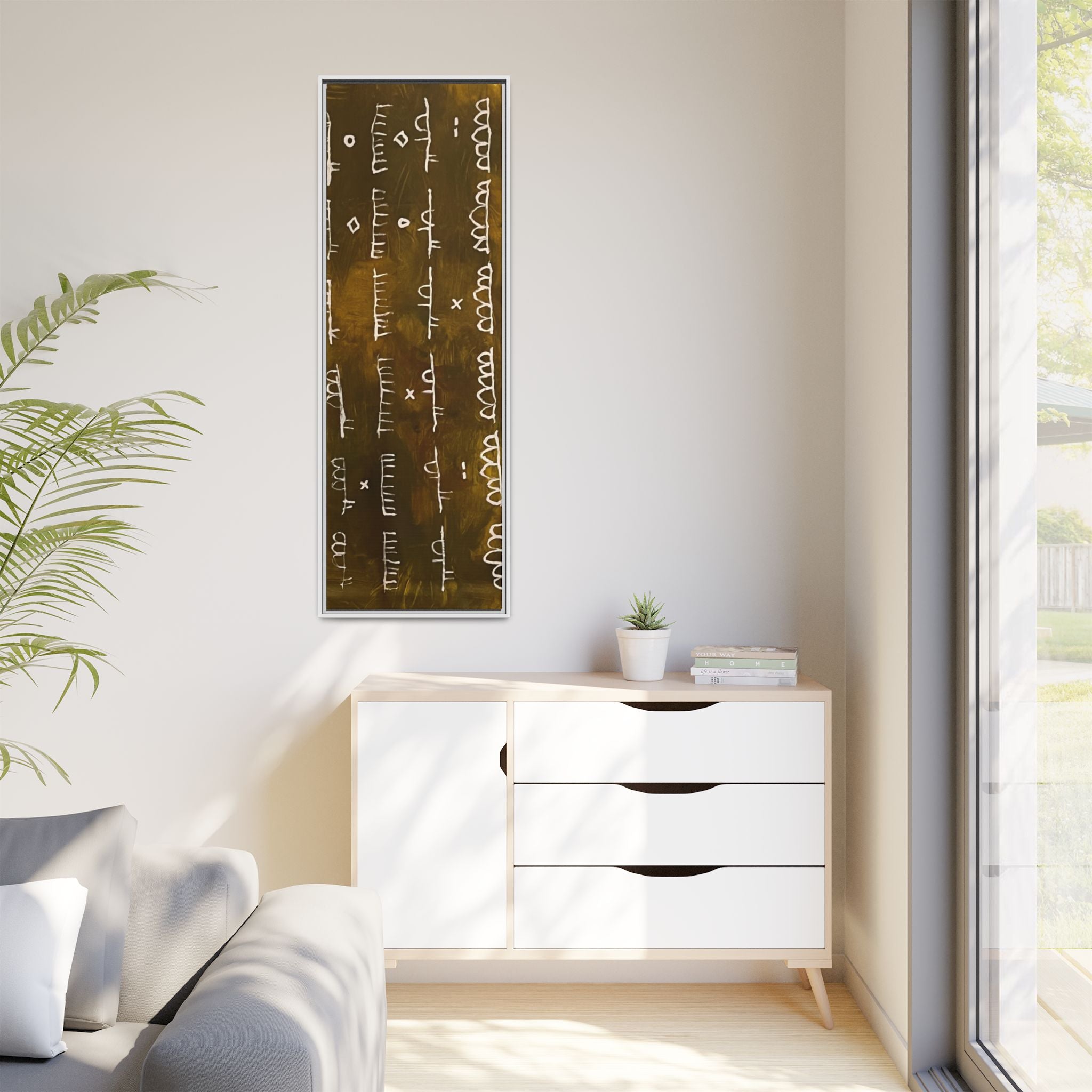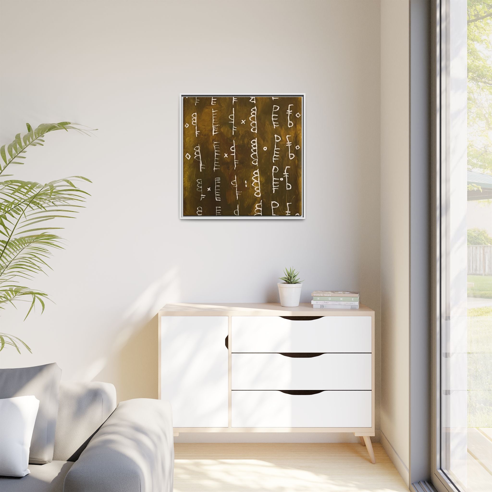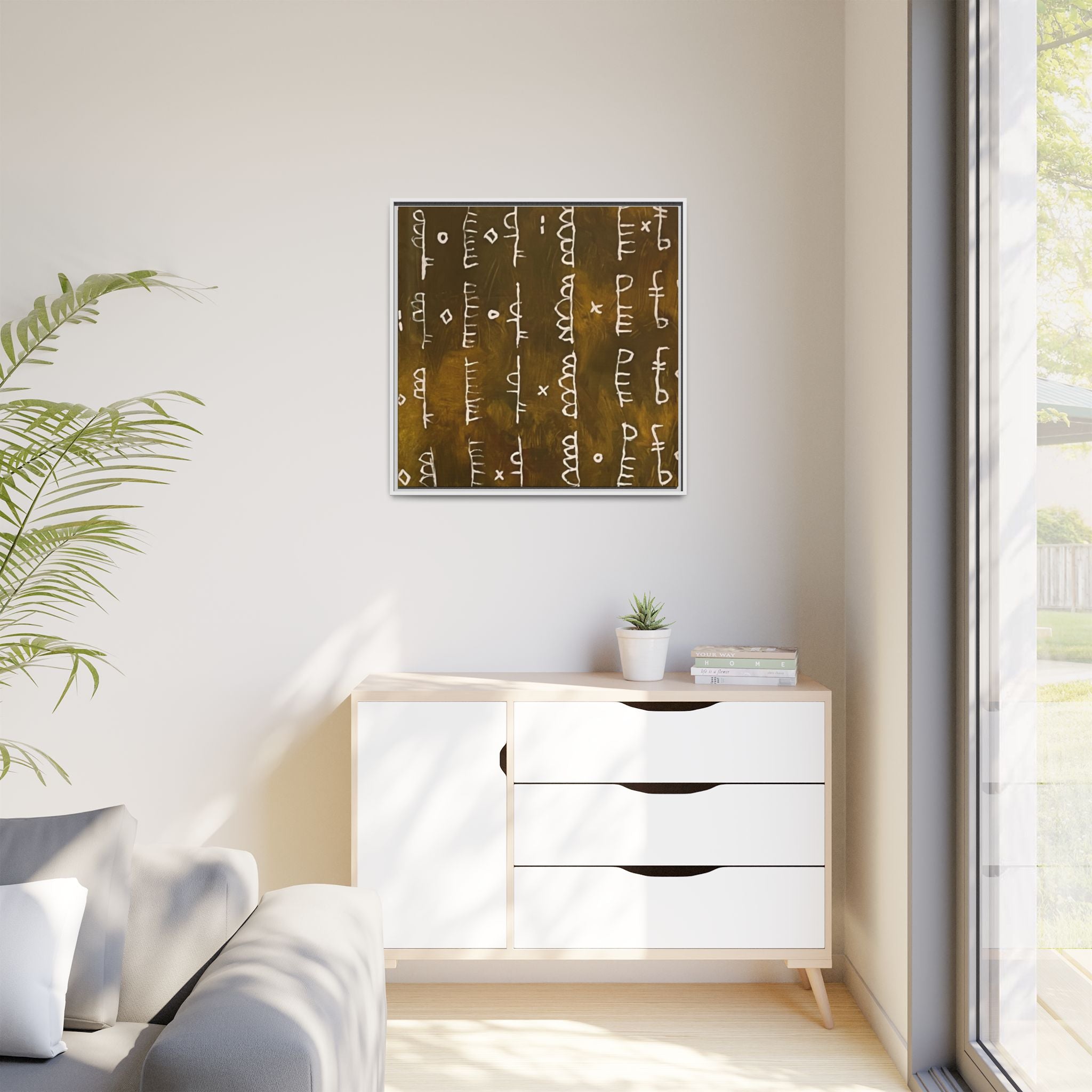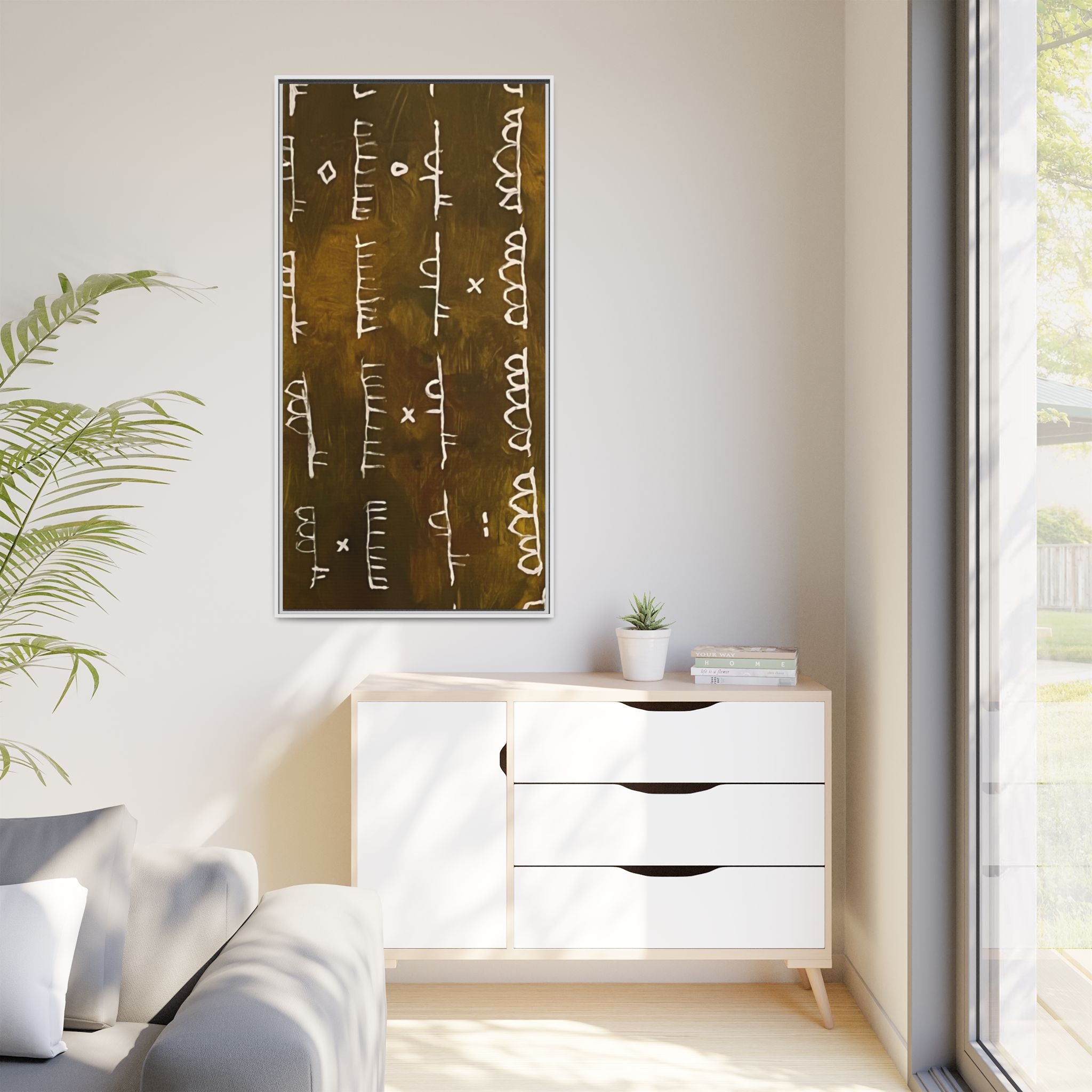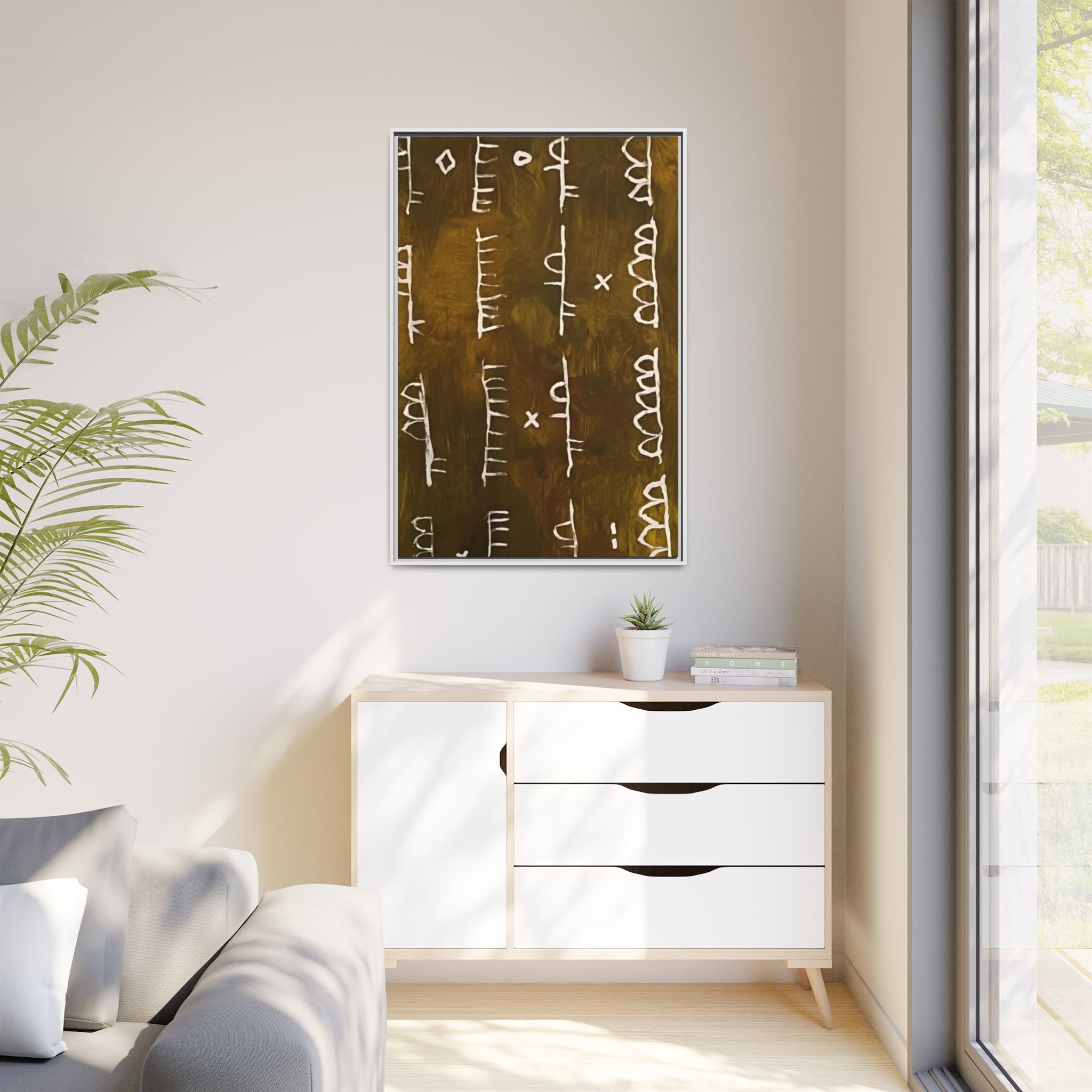 ARCHIVE is a visual language of memory—an abstract script carved in time. With its deep, textured tones and mark-like symbols, this piece echoes ancient records, quiet rituals, and forgotten alphabets. Minimal yet mysterious, it draws the viewer in to interpret, to feel, to remember.